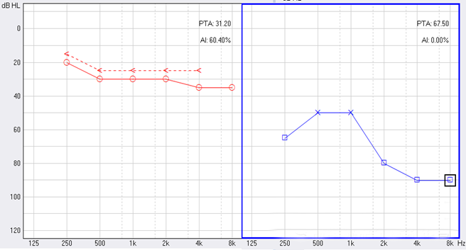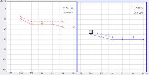 <span style="font-size:16px;"> 純音聽閾測試是聽力學所有測試項目中最基本的一項內容,包括氣導(AC)、骨導(BC)、最舒適閾(MCL)與不舒適閾(UCL)測試。測試結果能夠直接反映患者雙耳的聽力損失程度、性質與動態范圍,還能夠間接反映患者的患病位置、病因與助聽后效果。一般地,整個檢查控制在10分鐘左右,既能全面做完檢查,又不至患者疲勞而影響主觀反應。</span></p><p><span style="font-size:16px;"><br /></span></p><p style="text-align: center;"><span style="font-size:16px;"><img src="/upfiles/201804180138359098.jpg" alt="" /><br /></span></p><p style="text-align: center;"><span style="font-size:16px;"><br /></span></p><p><span style="font-size:16px;"> 純音聽閾測試是最考驗聽力學工作者實際工作能力的一項基本內容:</span></p><p><span style="font-size:16px;"> 1、若患者曾長期暴露于噪聲中,且無其它致耳損因素,很可能在3 kHz或6 kHz出現明顯的下降,聽力曲線呈現“V”字形,所以除了常規的倍頻程頻率外,還要加測這兩個頻率,否則就犧牲了多通道助聽器的意義。</span></p><p><span style="font-size:16px;"> 除了有過噪聲接觸史的患者需要加測半倍頻程外,涉及聲場助聽聽閾評估、賠償等情況都需要加測半倍頻程。</span></p><p><span style="font-size:16px;"> 耳鳴困擾的患者,注意避免與耳鳴聲類似的純音,若還用純音作為刺激聲,患者就會分辨不清,出現假陽性或假陰性。所以,測試者要換成囀音,既有別于耳鳴聲,又具有頻率特異性。</span></p><p><span style="font-size:16px;"> 2、不舒適閾反映患者對大聲的忍耐力,不舒適閾與氣導的差值能顯示患者的動態范圍,指導驗配師調節助聽器的最大輸出。</span></p><p><span style="font-size:16px;"> 不舒適閾測試頻率是否越多越好呢?實際上不是的。測得頻率過多,一會引起患者疲勞或不適,二是沒必要,大多數助聽器的最大輸出是一個整體,不能像調增益和壓縮那樣分通道,所以測多了并無好處,一般測0.5、1、2、4 kHz。</span></p><p><span style="font-size:16px;"> 3、如果兩側聽力有明顯差異,此時就要準備好掩蔽了,分為氣導掩蔽與骨導掩蔽。</span></p><p><span style="font-size:16px;"> (1)氣導掩蔽的判斷有兩個原則,只要符合其中一個原則,就需要重新測差耳氣導。具體做法是:</span></p><p><span style="font-size:16px;"> 測試完雙耳氣導,若發現某一頻率差耳氣導閾值比好耳氣導閾值多40 dB以上就要懷疑有可能是好耳偷聽的,需要給好耳氣導加掩蔽聲;</span></p><p><span style="font-size:16px;"> 測試完雙耳氣導與好耳骨導,若發現某一頻率差耳氣導閾值比好耳骨導閾值多40 dB以上就要懷疑有可能是好耳偷聽的,需要給好耳氣導加掩蔽聲。</span></p><p><span style="font-size:16px;"> 下面為未掩蔽的聽力圖:</span></p><p><span style="font-size:16px;"> </span></p><p><center><img src="/upfiles/201804180139232162.png" width="640" alt="" /></center><center><br /></center></p><p></p><p><span style="font-size:16px;"> 下圖為掩蔽后的左耳真實氣導值:</span></p><p><span style="font-size:16px;"> </span></p><p><center><img src="/upfiles/201804180139383367.png" width="640" alt="" /></center><center><br /></center></p><p></p><p><span style="font-size:16px;"> (2)骨導掩蔽的判斷原則:</span></p><p><span style="font-size:16px;"> 測試完雙耳氣導與好耳骨導,若發現某一頻率差耳氣導閾值比好耳骨導閾值大于等于15 dB就必須予以掩蔽,重測骨導。</span></p><p><span style="font-size:16px;"> 下圖為右耳氣導加掩蔽后左耳骨導的真實值:</span></p><p><span style="font-size:16px;"> </span></p><p><center><img src="/upfiles/201804180140001814.png" width="640" alt="" /></center><center><br /></center></p><p></p><p><span style="font-size:16px;"> 注意:</span></p><p><span style="font-size:16px;"> 掩蔽的規則要按順序適用;</span></p><p><span style="font-size:16px;"> 各頻率根據規則決定是否需要加掩蔽;</span></p><p><span style="font-size:16px;"> 很少需要掩蔽所有頻率,通常氣導掩蔽頻率不應超三個,骨導掩蔽頻率不應超兩個,否則受試者會疲憊不堪。</span></p><p><span style="font-size:16px;"> 醫院測聽的主要目的是診斷和鑒別聽力損失的性質和程度,驗配中心的主要目的是盡可能地幫助患者選擇并調試好助聽器。</span></p><p><span style="font-size:16px;"> 更多詳情請登錄m.vip005.cn。</span></p>" />
