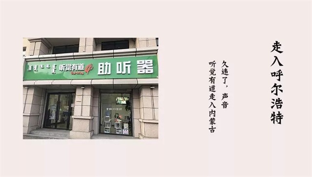 <span style="font-size:16px;"><img src="/upfiles/201801230449537603.jpg" alt="" /> </span></p><p style="text-align: center;"><span style="font-size:16px;"> </span></p><p style="text-align: center;"><span style="font-size:16px;"><span style="font-size:16px; text-align: center;">  </span>唱著藍藍的天空,</span></p><p style="text-align: center;"><span style="font-size:16px;">  唱著清清的湖水,</span></p><p style="text-align: center;"><span style="font-size:16px;">  內蒙古人對聲音,</span></p><p style="text-align: center;"><span style="font-size:16px;">  有著與生俱來的熱愛。</span></p><p style="text-align: center;"><span style="font-size:16px;">  </span></p><p><center><img src="/upfiles/201801230450097968.jpg" alt="" /></center><center><br /></center></p><p></p><p style="text-align: center;"><span style="font-size:16px;">  然而在內蒙古,</span></p><p style="text-align: center;"><span style="font-size:16px;">  也有許多人正受著聽力損失的影響。</span></p><p style="text-align: center;"><span style="font-size:16px;">  失去聆聽世界的機會,</span></p><p style="text-align: center;"><span style="font-size:16px;">  不免有太多遺憾……</span></p><p style="text-align: center;"><span style="font-size:16px;">  </span></p><p><center><img src="/upfiles/201801230450153392.jpg" alt="" /></center><center><br /></center></p><p></p><p style="text-align: center;"><span style="font-size:16px;">  走入呼爾浩特,</span></p><p style="text-align: center;"><span style="font-size:16px;">  聽覺有道在內蒙古第一家加盟店開業了!</span></p><p style="text-align: center;"><span style="font-size:16px;">  久違的聲音,</span></p><p style="text-align: center;"><span style="font-size:16px;">  即將重返您的耳邊!</span></p><p style="text-align: center;"><span style="font-size:16px;">  </span></p><center><img src="/upfiles/201801230450222470.jpg" alt="" /><br /></center><p></p><p style="text-align: center;"><span style="font-size:16px;">  聽覺有道助聽器全國連鎖服務機構,</span></p><p style="text-align: center;"><span style="font-size:16px;">  有專業驗配師團隊,</span></p><p style="text-align: center;"><span style="font-size:16px;">  世界各大品牌助聽器,</span></p><p style="text-align: center;"><span style="font-size:16px;">  優越的助聽器驗配環境,</span></p><p style="text-align: center;"><span style="font-size:16px;">  提供溫暖而專業的驗配服務。</span></p><p style="text-align: center;"><span style="font-size:16px;">  </span></p><p><center><img src="/upfiles/201801230450313591.jpg" alt="" /></center><center><br /></center></p><p></p><p style="text-align: center;"><span style="font-size:16px;">  禮輕情意重。</span></p><p style="text-align: center;"><span style="font-size:16px;">  凡進入呼和浩特烏蘭察布店咨詢</span></p><p style="text-align: center;"><span style="font-size:16px;">  就有生活小禮相送,</span></p><p style="text-align: center;"><span style="font-size:16px;">  且可免費享受聽力檢測相關服務。</span></p><p style="text-align: center;"><span style="font-size:16px;">  </span></p><p><center><img src="/upfiles/201801230450402661.jpg" alt="" /></center><center><br /></center></p><p></p><p style="text-align: center;"><span style="font-size:16px;">  內蒙古的朋友,</span></p><p style="text-align: center;"><span style="font-size:16px;">  準備好重回有聲世界了嗎?</span></p><p style="text-align: center;"><span style="font-size:16px;">  親朋的淺笑聲,</span></p><p style="text-align: center;"><span style="font-size:16px;">  你還記得嗎?!</span></p><p style="text-align: center;"><span style="font-size:16px;">  </span></p><p><center><img src="/upfiles/201801230450477545.jpg" alt="" /></center><center><br /></center></p><p></p><p style="text-align: center;"><span style="font-size:16px;">  門店地址:</span><span style="font-size:16px;">內蒙古呼爾浩特市烏蘭察布東街扶貧樓對面</span></p><p style="text-align: center;"><span style="font-size:16px;">  聯系電話:</span><span style="font-size:16px;">0471-3977839 或 13514714042</span></p>" />
