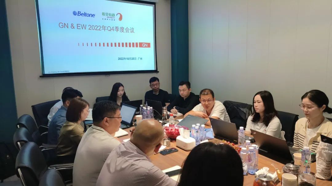 2022年10月25日上午,聽覺有道全國聽力連鎖和GN大北歐聽力集團在聽覺有道全國運營管理中心召開“2022年EW&GN第四季度會議”。